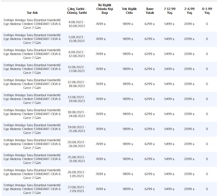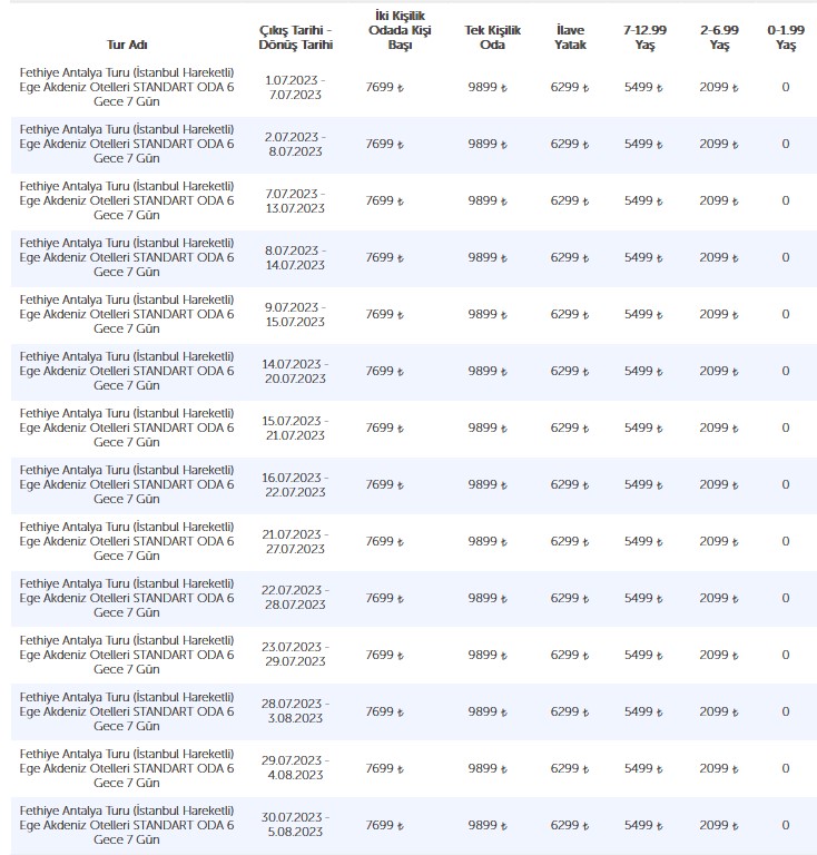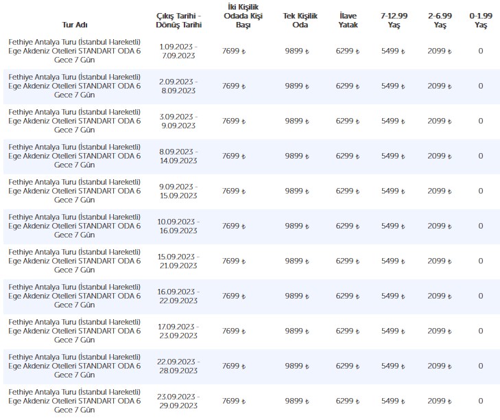 • 7699 ₺2 Kişilik odada kişi başı fiyatı