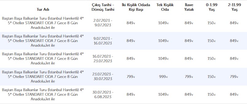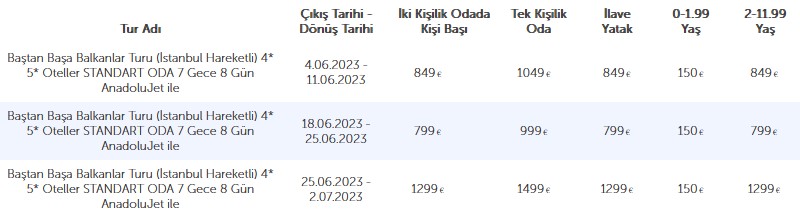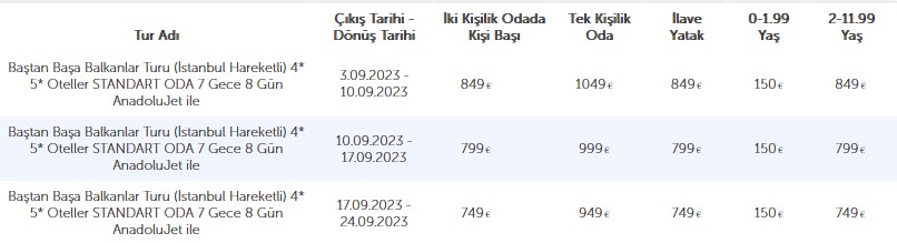 • 749 €2 Kişilik odada kişi başı fiyatı