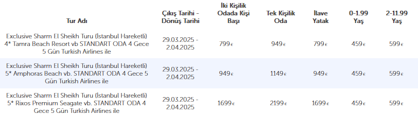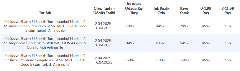 Türk havayolları özel seferleri ile İstanbul (IST)– Sharm El Sheikh (SSH) arası ekonomi sınıf uçak bileti